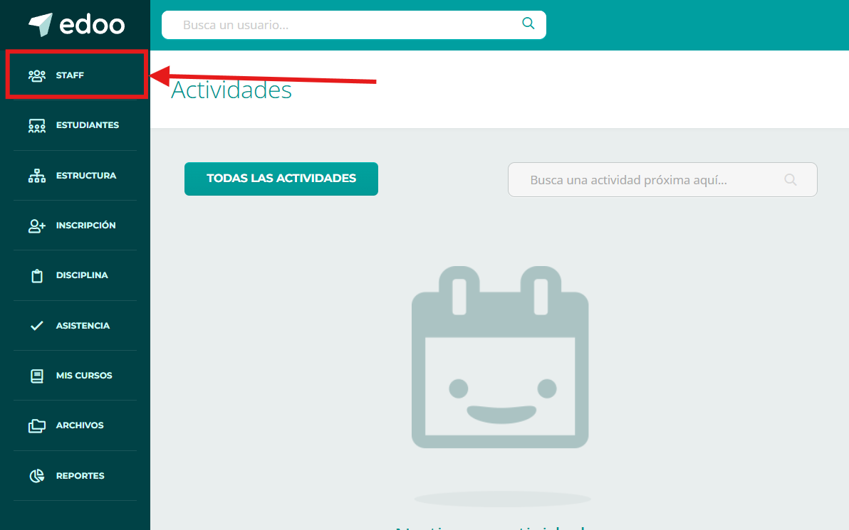 Como paso principal debemos dirigirnos al apartado STAFF ubicado en la columna lateral izquierda.