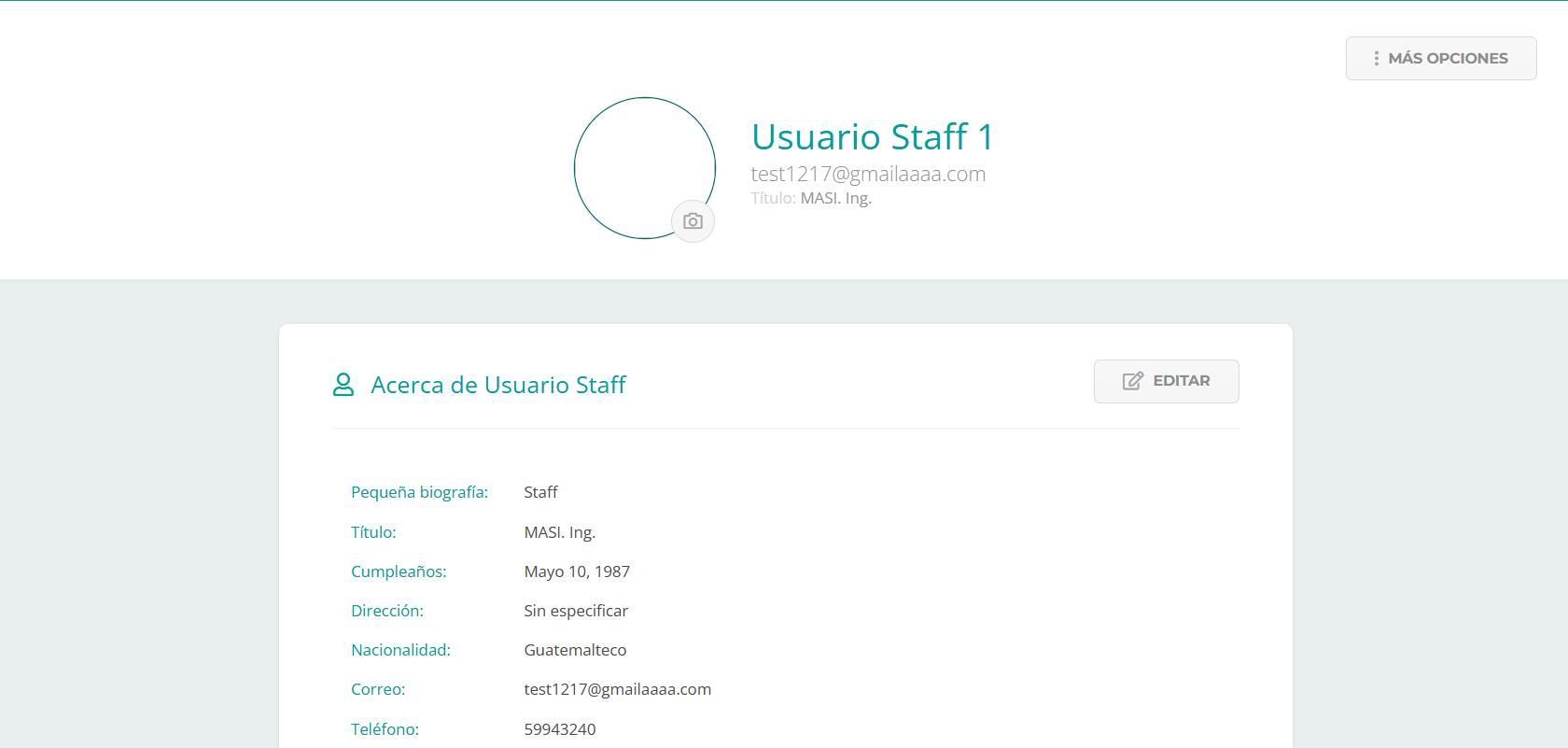 Al seleccionar el perfil del usuario a verificar podremos observar que la información que nos presenta el perfil de un usuario staff es: